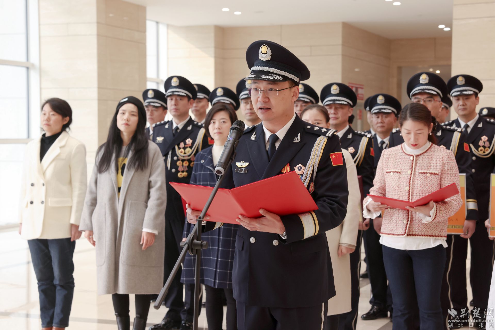 飄揚(yáng)的警旗下,黃石市副市長(zhǎng)、市公安局黨委書記、局長(zhǎng)黃志勇帶領(lǐng)大家重溫入警誓詞:“我是中國(guó)人民警察,我宣誓……”全體民警高舉右臂,緊握右拳,鏗鏘有力的話語(yǔ)表達(dá)對(duì)公安事業(yè)的無(wú)限熱愛。