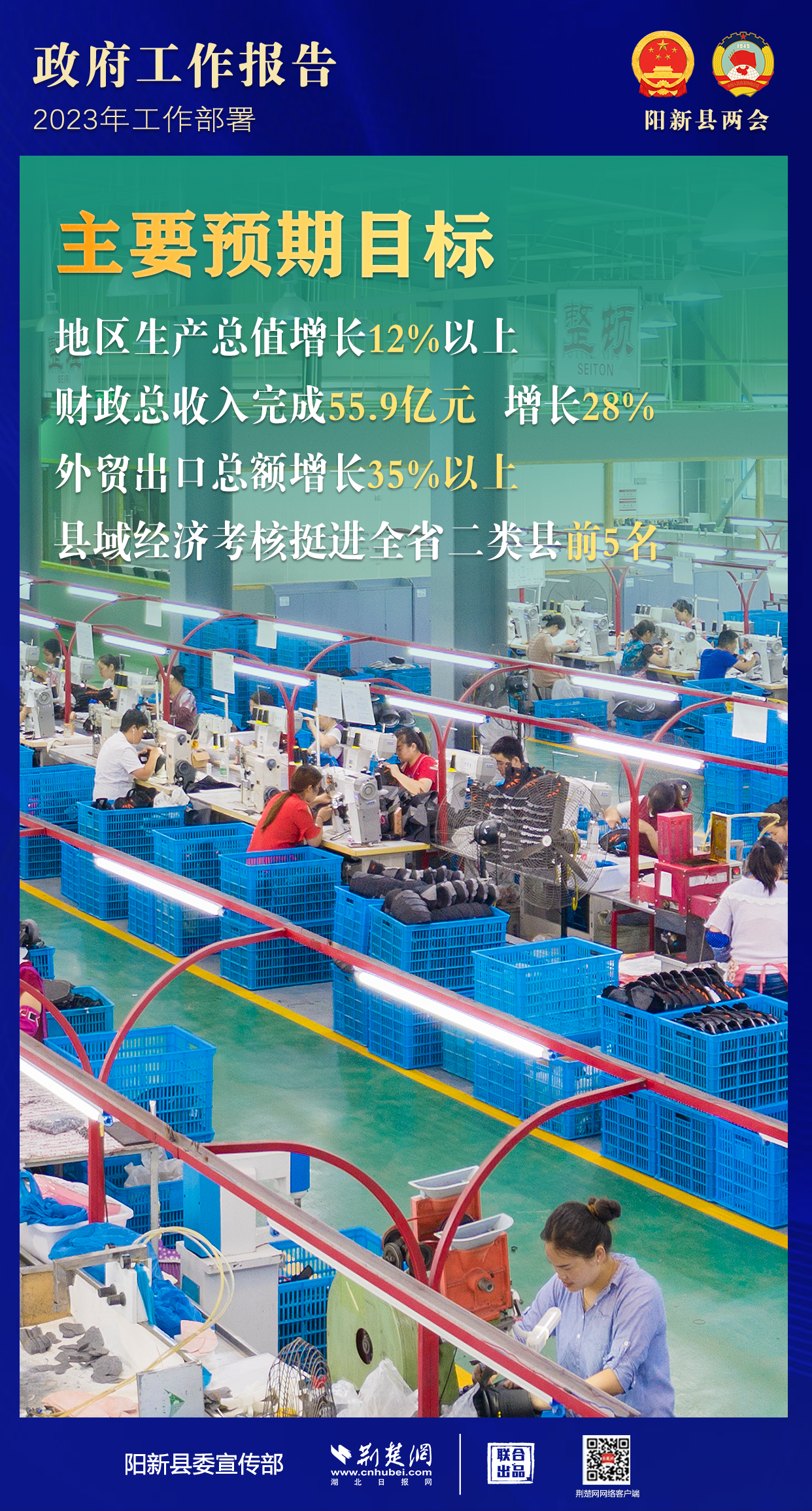 1月10日上午,在陽(yáng)新縣第十九屆人民代表大會(huì)第三次會(huì)議上,陽(yáng)新縣長(zhǎng)楊波代表陽(yáng)新縣人民政府向大會(huì)作政府工作報(bào)告。楊波回顧了2022年陽(yáng)新縣工作,并從八個(gè)方面對(duì)2023年工作進(jìn)行了部署安排。