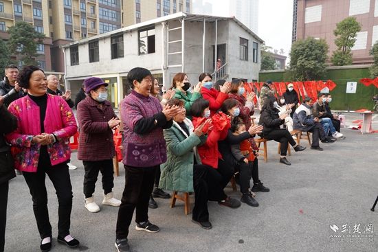 翰墨飄香,迎春納福。3名書法家現(xiàn)場潑墨揮毫,寫春聯(lián)、送福字?!耙簧碚龤飧遗鲇?,兩袖清風(fēng)不染塵”,通過寫“廉”聯(lián),讓新年更添風(fēng)清氣正之色。民間藝術(shù)家們帶來音樂快板《竹板聲聲頌清廉》和廉政楚劇《門道》,在一聲聲“廉”板和“廉”戲聲中,為群眾、干部帶來廉潔文化洗禮。最后,一場老少皆宜的《踩蓮船》表演,讓現(xiàn)場觀眾捧腹大笑、樂不可支。