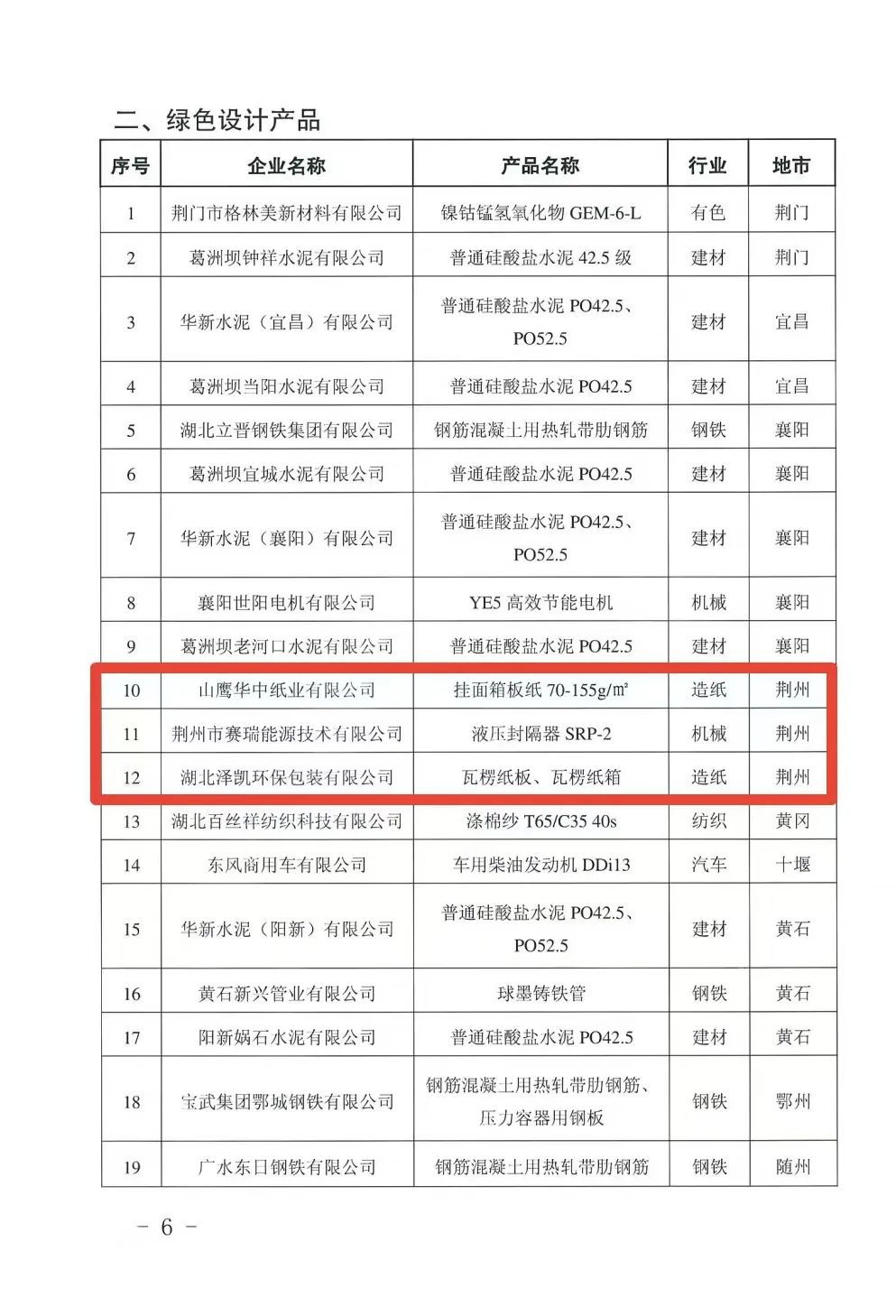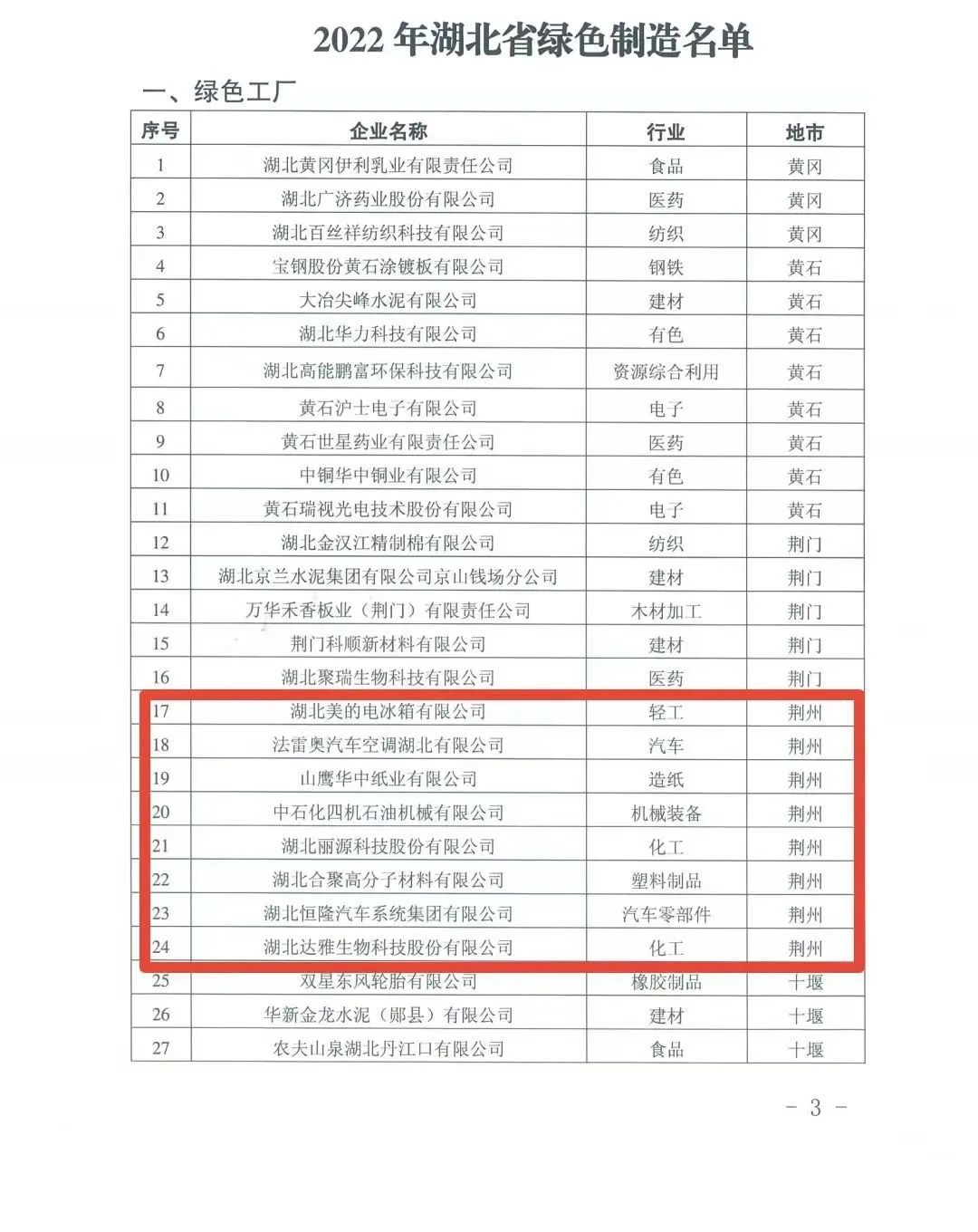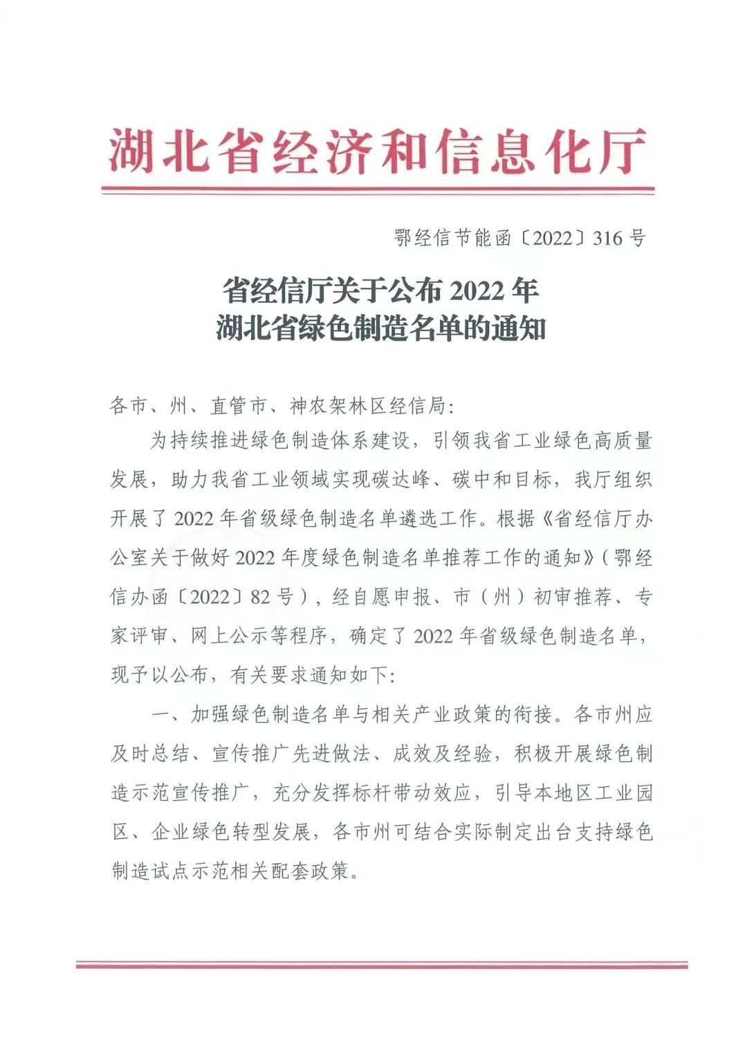 2022年湖北省綠色制造名單