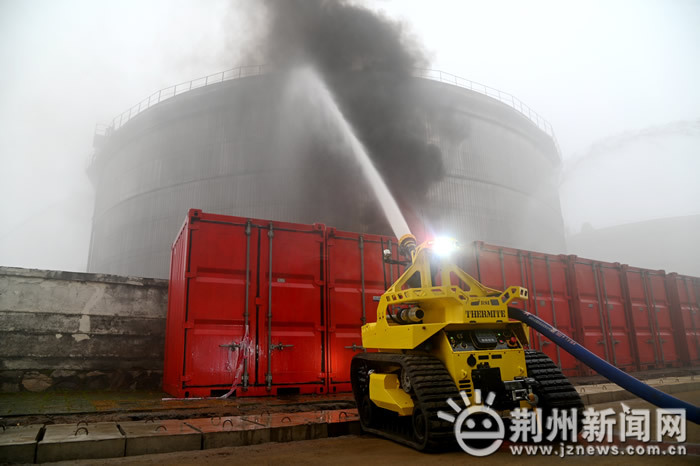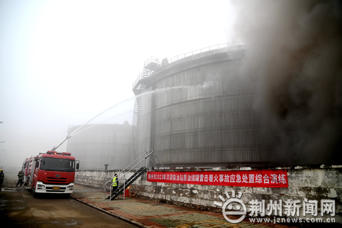 此次演練模擬,洪湖輸油站1號(hào)原油儲(chǔ)罐因雷擊起火,洪湖輸油站初期應(yīng)急處置失敗,儲(chǔ)罐發(fā)生爆炸導(dǎo)致3人死亡、2人重傷的較大安全事故。接到災(zāi)情信息后,洪湖市、荊州市分別啟動(dòng)二、三級(jí)應(yīng)急響應(yīng),并調(diào)集荊州市消防救援支隊(duì)石油化工火災(zāi)處置專業(yè)隊(duì)、通信前突分隊(duì)、戰(zhàn)勤保障分隊(duì),共14車64名消防救援人員趕赴現(xiàn)場(chǎng),運(yùn)用一體化多用途無(wú)人機(jī)系統(tǒng)、滅火機(jī)器人、大跨距舉高噴射消防車等高精尖消防車輛裝備,歷經(jīng)20多分鐘的緊急處置,原油罐火災(zāi)撲救成功。