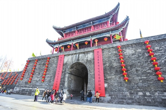 無聯(lián)不成春,有聯(lián)意才濃。自1月18日起,荊州古城寅賓門、新東門、公安門等9座城門陸續(xù)懸掛上巨幅大紅春聯(lián)。一幅幅寓意祥和的春聯(lián),為荊州古城增添了喜慶祥和的節(jié)日氛圍,彰顯了荊州加快建設(shè)江漢平原高質(zhì)量發(fā)展示范區(qū)的決心與前景。此次城門掛春聯(lián)活動由市委宣傳部、市文旅局、市文聯(lián)主辦,市楹聯(lián)學(xué)會、市書法家協(xié)會、市古城墻保護發(fā)展中心承辦。