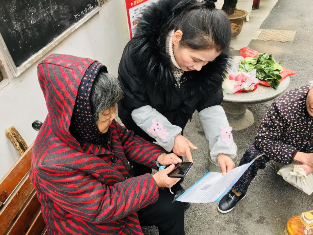 圖為西塞山區(qū)八泉街道和平街社區(qū)紀(jì)檢委員向群眾介紹“‘碼’上監(jiān)督馬上辦”二維碼