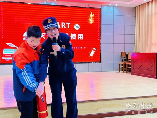 同時(shí),大隊(duì)宣傳員向?qū)W生們講解各類消防器材裝備的用途和使用方法,“手把手”指導(dǎo)他們學(xué)習(xí)滅火器正確操作步驟和注意事項(xiàng),學(xué)生們積極參與,現(xiàn)場(chǎng)氣氛熱烈?;顒?dòng)結(jié)束后,大隊(duì)宣傳員還為學(xué)生們發(fā)放《小學(xué)生消防安全教育讀本》。