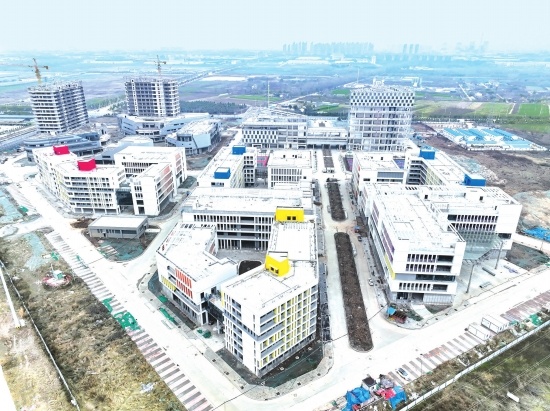 近日,無人機(jī)航拍沙市區(qū)岑河金色童年小鎮(zhèn)科創(chuàng)園項(xiàng)目一期建設(shè)現(xiàn)場(chǎng),大樓主體已基本完工,幕墻正在安裝中。