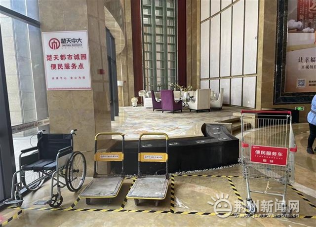 走進楚天都市誠園,干凈整潔、綠植環(huán)繞、環(huán)境怡人。小區(qū)大門顯眼處的便民服務(wù)點,擺放了輪椅、推車等用具,供居民使用。