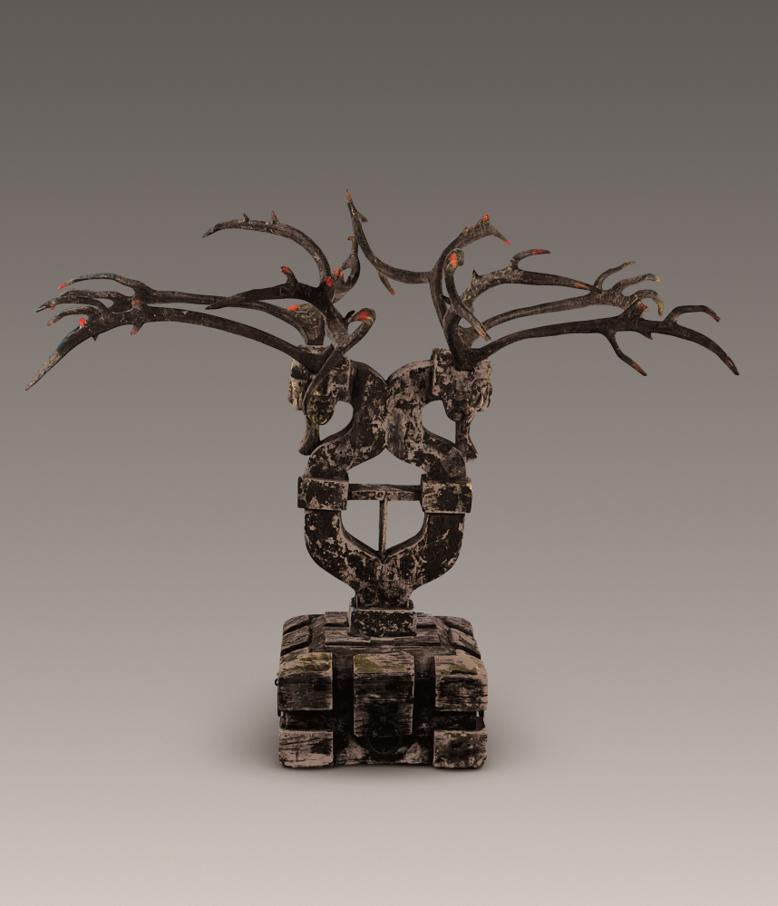 鎮(zhèn)墓獸作為古代鎮(zhèn)墓辟邪的喪葬用品在楚墓中很常見。一般由方形底座、曲形獸體和鹿角三部分組成。