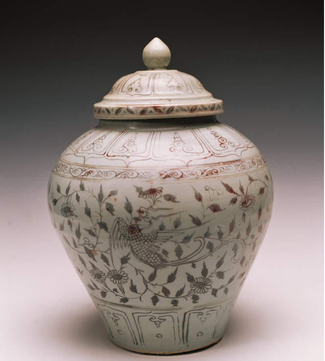 釉里紅鳳舞纏枝菊花紋蓋罐