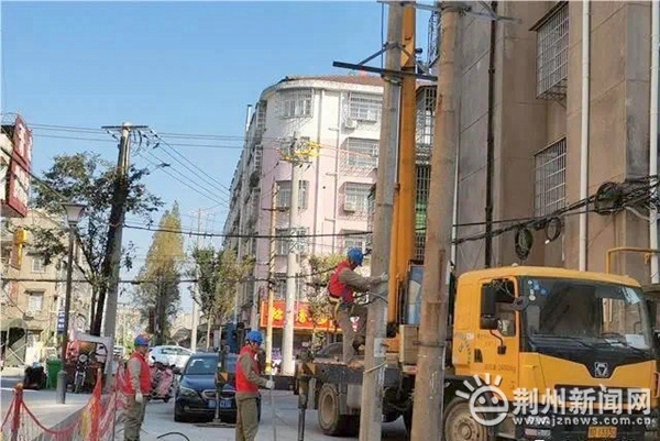 拆除電線桿并沒有看起來的那么簡單,還要考慮到線路的鋪設,居民用電等一系列問題。為此,沙市區(qū)住建局和荊州供電公司提前到現(xiàn)場勘察,在土建施工中預埋了通道,多方聯(lián)動配合,才完成了這項任務。