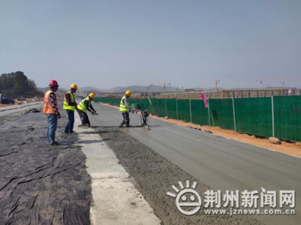 松滋市臨港工業(yè)園擴(kuò)園(一期)項(xiàng)目建設(shè)現(xiàn)場(chǎng),挖掘機(jī)、推土機(jī)、壓路機(jī)轟鳴作響,目前正在進(jìn)行一號(hào)路段混凝土路面的鋪設(shè)工作,項(xiàng)目北河二干分渠涵管已完工,首開區(qū)一號(hào)路砼路面完成80%,一支路雨水管完成50%,土方完成95%,二支路近期將開始級(jí)配砂石及水穩(wěn)下基層攤鋪。
