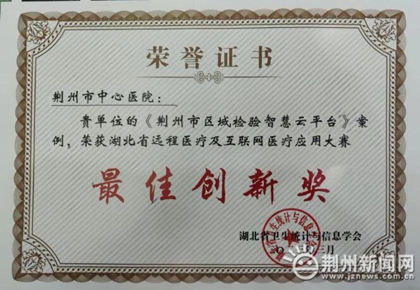 荊州新聞網(wǎng)消息(記者楊輝 特約記者朱飛 通訊員涂偉)湖北省遠(yuǎn)程醫(yī)療及互聯(lián)網(wǎng)應(yīng)用大賽經(jīng)過半年的激烈角逐,日前在嘉魚縣落下帷幕。荊州市中心醫(yī)院的參賽案例《荊州市區(qū)域檢驗(yàn)智慧云平臺(tái)》榮獲該項(xiàng)賽事最佳創(chuàng)新獎(jiǎng)。