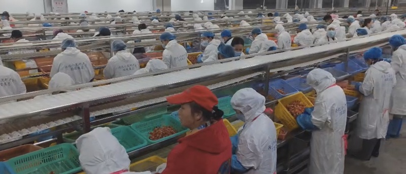 與此同時,該公司不斷自我更新,實現(xiàn)高質(zhì)量發(fā)展——在生產(chǎn)設備上進行革新,引進灌裝、包裝、包冰等全自動機器,大大提高生產(chǎn)效率;在銷售產(chǎn)品上進行創(chuàng)新,除傳統(tǒng)的整蝦、蝦尾、魚糜等產(chǎn)品外,新研發(fā)了小龍蝦預制菜、農(nóng)發(fā)大禮包等;在銷售方式上出新,開創(chuàng)“互聯(lián)網(wǎng)+”模式,聯(lián)合本土網(wǎng)紅,打造新媒體團隊,與時俱進,贏得更多年輕客戶市場。