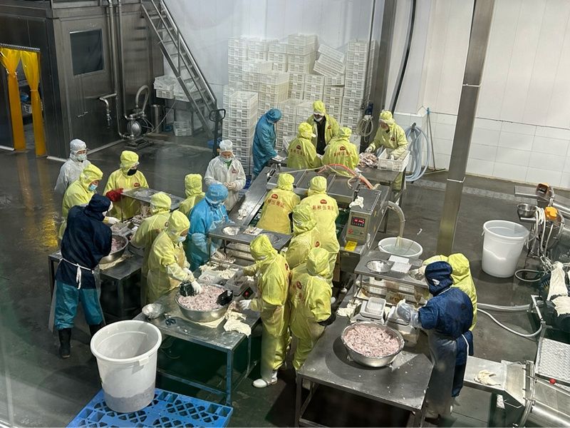 “去年生產(chǎn)各類小龍蝦、鮰魚、淡水魚糜2.5萬噸,累計完成產(chǎn)值8億元?!迸碛贽r(nóng)介紹,今年生產(chǎn)車間全面進行無菌升級,生產(chǎn)線得到進一步優(yōu)化。為提高生產(chǎn)效率,公司今年在原有的蒸煮生產(chǎn)線上又新增1條生產(chǎn)線,極大的緩解小龍蝦加工前期工作,讓產(chǎn)能有所提升。