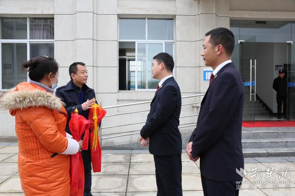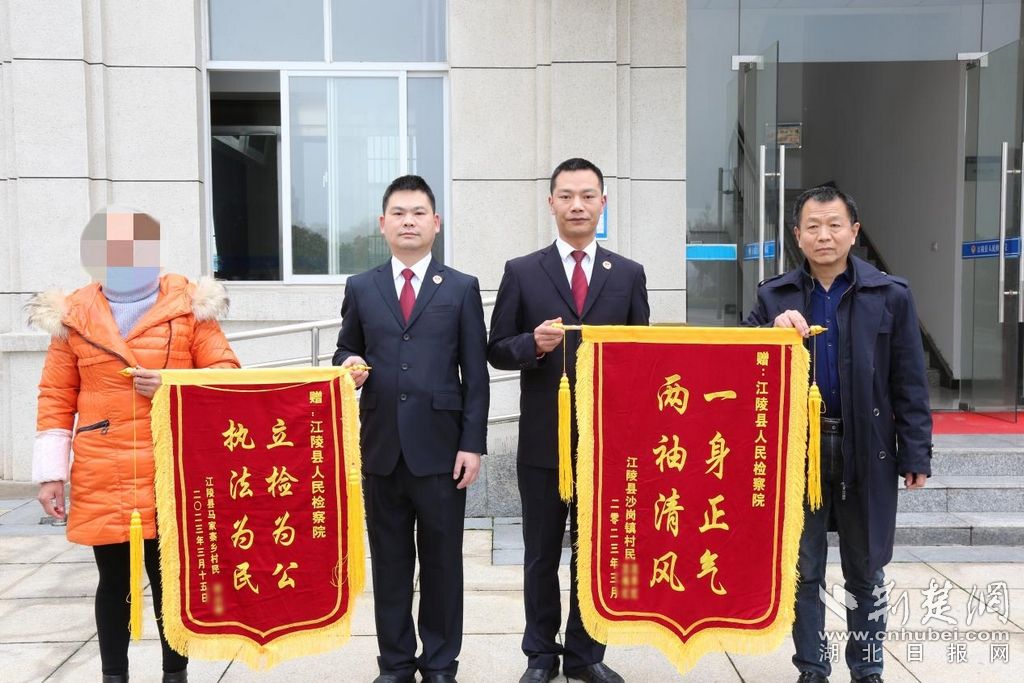 為江陵縣人民檢察院檢察官送上感謝錦旗。通訊員供圖
