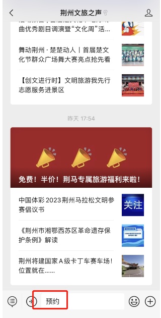 1、關(guān)注“荊州文旅之聲”微信號(hào);