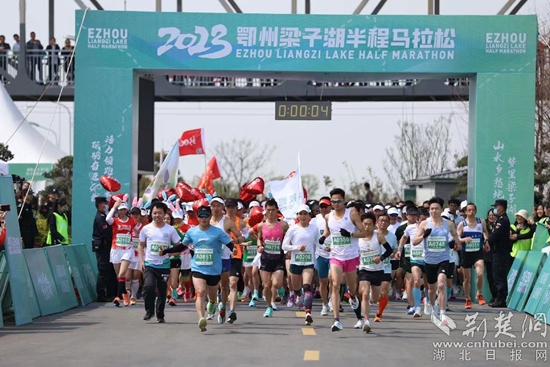 荊楚網(wǎng)(湖北日?qǐng)?bào)網(wǎng))訊(記者 曾達(dá)飛 特約記者 李君亮)3月26日下午1點(diǎn)30分,在鄂州市梁子湖區(qū)梧桐湖碼頭,2023鄂州梁子湖半程馬拉松熱情開(kāi)跑。