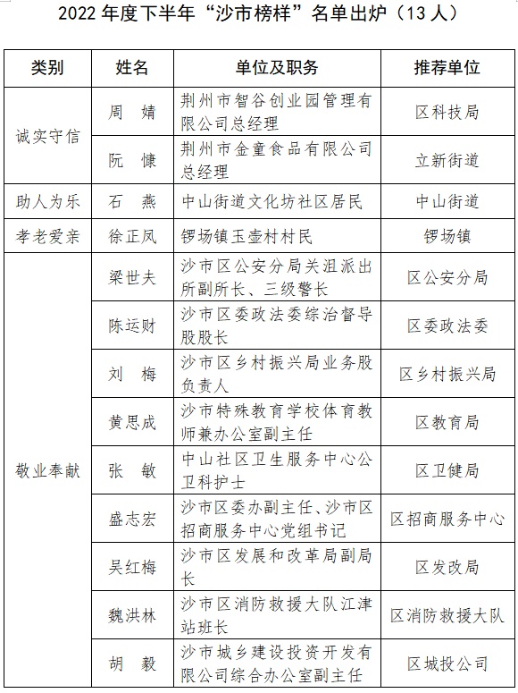 “沙市榜樣”上榜人物事跡簡(jiǎn)介