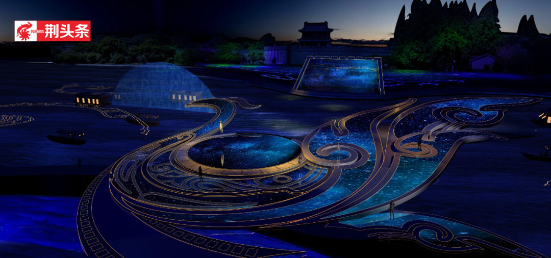 位于荊州古城歷史文化旅游區(qū)東門賓陽樓景區(qū)的新建大型水上舞臺,已展現(xiàn)出“鳳鳥騰云,翱翔九天”的恢弘氣勢。
