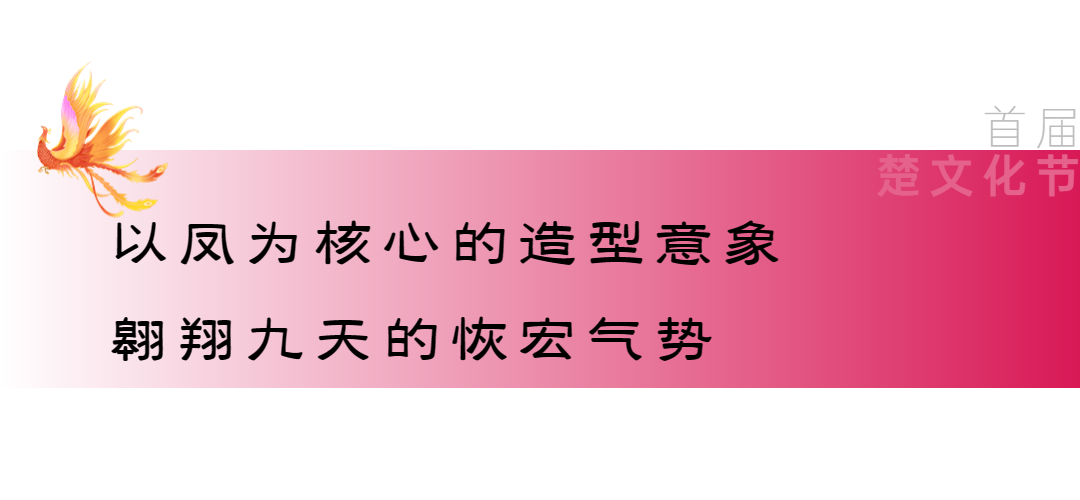 主舞臺造型以楚文化代表紋飾鳳鳥為原型,以一只引吭高歌、昂首飛天的鳳鳥,象征楚文化中“楚人崇鳳”的傳承與信仰,傳達荊楚大地“一鳴驚人、一飛沖天”的氣質(zhì)與精神。