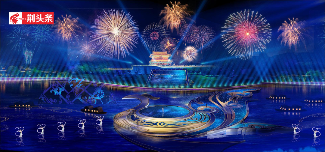 4月8日晚,在荊州古城東門賓陽樓護城河畔舉行。