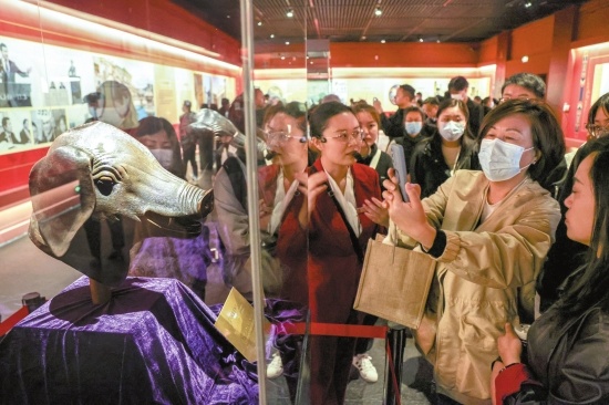 游客參觀荊州博物館。(本報(bào)記者張夢瑤攝)