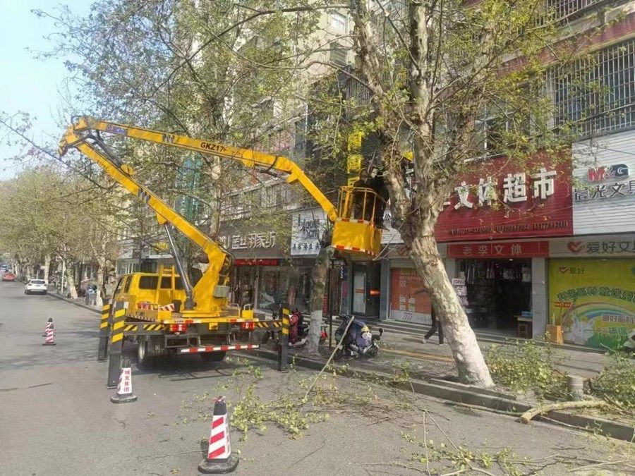 春季風(fēng)大天干,樹木上的枯枝極易隨風(fēng)掉落。為保證樹木健康生長和道路安全通暢,同時(shí)為沿街商戶提供更好的營商環(huán)境,市城發(fā)置業(yè)集團(tuán)鴻韻園林公司組織修剪人員對城區(qū)部分行道樹進(jìn)行修剪整形,通過剪去干枯枝、下垂枝、交叉枝,改善行道樹內(nèi)膛通風(fēng)條件,提高行道樹抵抗風(fēng)雨能力,減少枝葉掉落的安全隱患。