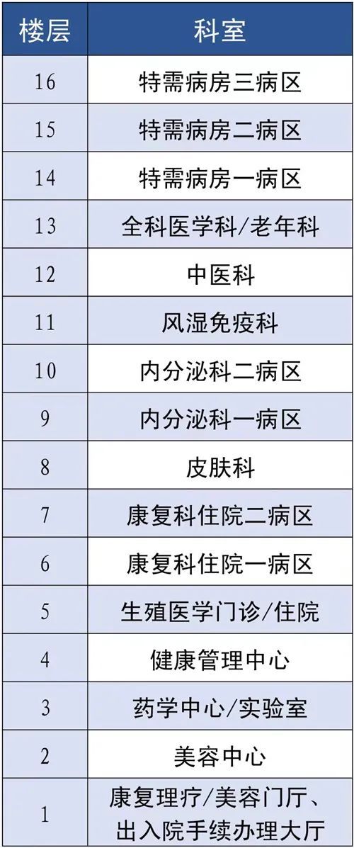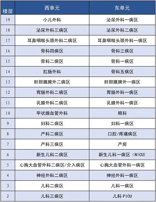 外科樓住院部樓層分布圖