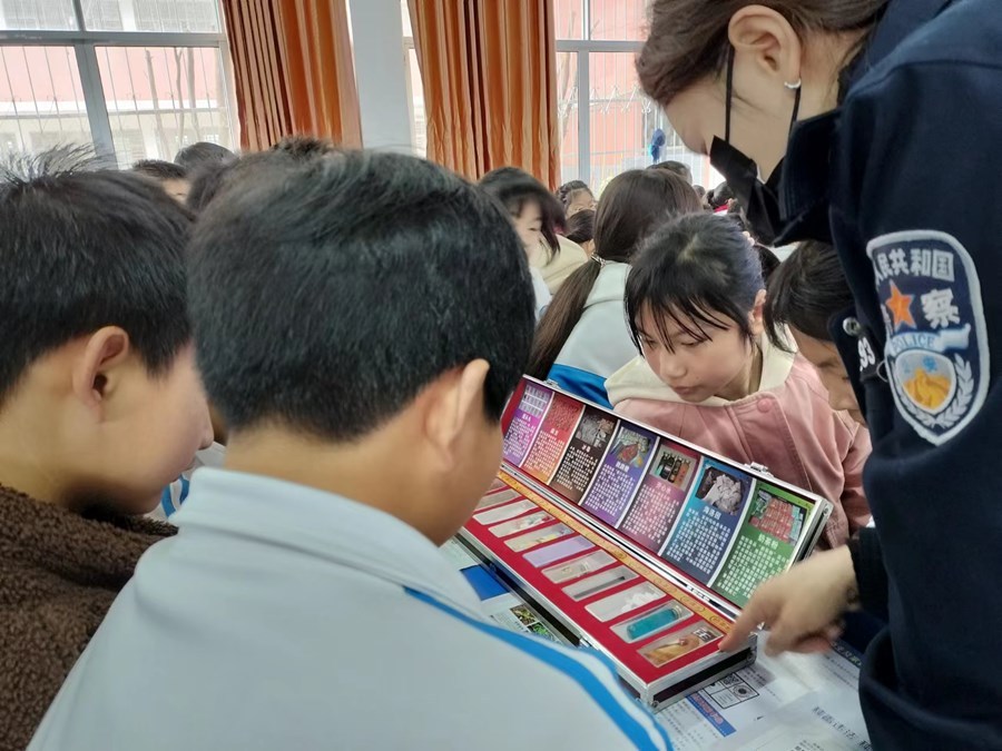 活動開始,工作人員向同學(xué)們發(fā)放了禁毒法規(guī)宣傳折頁、防范電信網(wǎng)絡(luò)詐騙宣傳手冊,展示了仿真毒品模型。民警詳細介紹了毒品常識、吸毒危害性、如何防范毒品等相關(guān)知識;針對當(dāng)前詐騙案件頻發(fā)現(xiàn)狀,結(jié)合青少年的心理發(fā)展特征,講解了電信詐騙的作案手法和識別防范措施。宣講課還設(shè)置互動環(huán)節(jié),采取問答、搶答方式,讓同學(xué)們在輕松愉悅的氛圍中學(xué)習(xí)掌握相關(guān)知識。