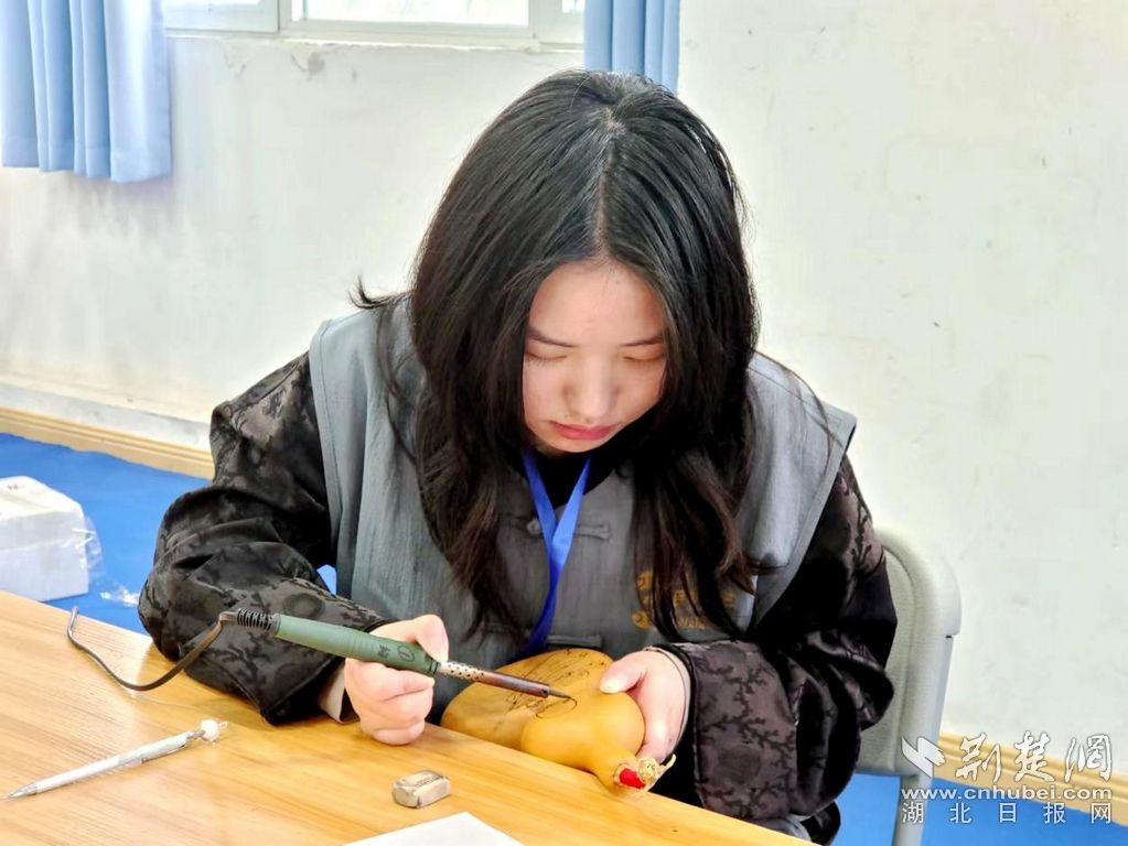 技能在身,百業(yè)可為,這是新一代技能人才展示自我、成就夢(mèng)想的舞臺(tái)?!斑@次的作品將傳統(tǒng)神話嫦娥奔月與我國(guó)載人航天相結(jié)合,希望能以此致敬祖國(guó)的輝煌發(fā)展?!背蓙嗘檬鞘〖?jí)非遺葫蘆烙畫(huà)傳承人張遠(yuǎn)龍的學(xué)生,她表示:“此次參賽既能檢驗(yàn)自己的手工技藝,也是一次很好的交流學(xué)習(xí)的機(jī)會(huì)?!?/p>