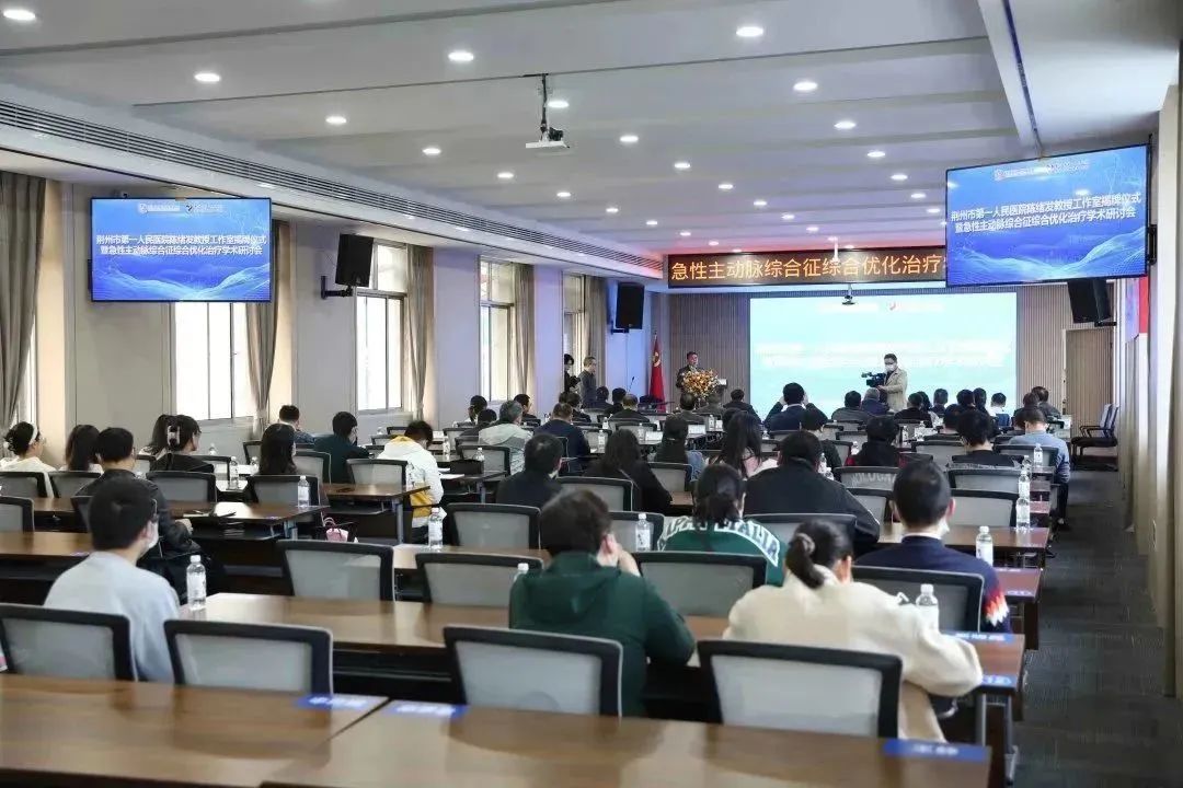 隨后,市衛(wèi)健委主任姜桂峰、亞心醫(yī)院副院長鄢華、陳緒發(fā)教授、荊州一醫(yī)副院長譚小平、荊州一醫(yī)心臟大血管外科副主任趙迪共同上臺(tái)為“陳緒發(fā)教授工作室”揭牌。揭牌儀式后,武漢亞心醫(yī)院專家團(tuán)隊(duì)與荊州一醫(yī)心臟大血管外科還共同進(jìn)行了急性主動(dòng)脈綜合征綜合優(yōu)化治療學(xué)術(shù)研究會(huì),就急性主動(dòng)脈綜合征的優(yōu)化治療方法,心血管一體化防治工作等話題,開展了專題講座和學(xué)術(shù)交流。