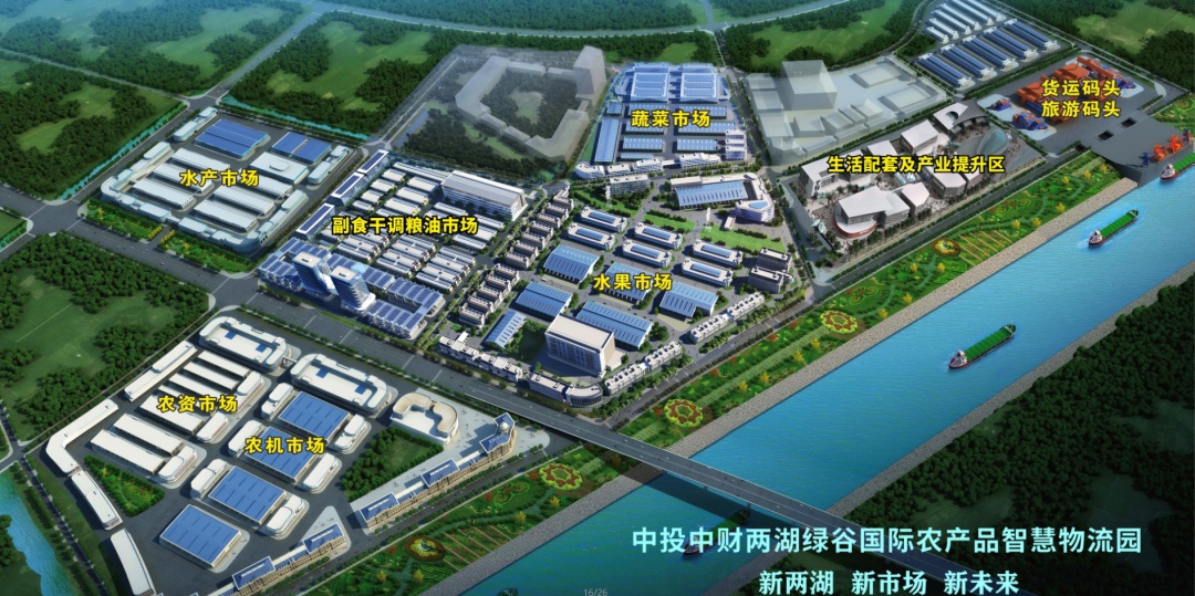 中投中財兩湖綠谷國際農(nóng)產(chǎn)品智慧物流園項目總投資31.5億元,建成后,將集農(nóng)產(chǎn)品交易集散中心、服務(wù)保障區(qū)、商務(wù)展示區(qū)、生活配套區(qū)四大版塊于一體,成為一個現(xiàn)代化、智能化、 數(shù)字化、綠色化的全國農(nóng)產(chǎn)品現(xiàn)代流通示范園區(qū)和轉(zhuǎn)型升級標(biāo)桿市場。