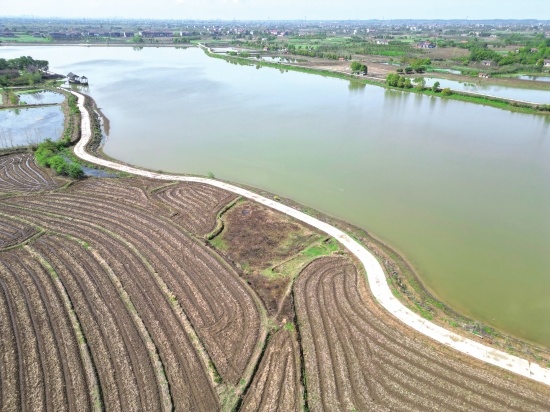 日前,無人機(jī)航拍荊州區(qū)馬山鎮(zhèn)裁縫村張家垱水庫。當(dāng)前正值春耕灌溉用水期,該鎮(zhèn)在確保各大水庫蓄水安全的前提下,科學(xué)調(diào)度水庫運行,充分利用好有效降雨,將200萬方“天然水”引入庫塘池堰,全力保障春耕春灌。(柯以鵬 馬良昊 攝)