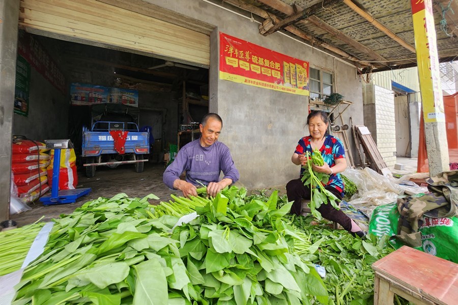 “早上摘的黃瓜特別水靈,客商們就喜歡這種品相的黃瓜?!睆埗朔χf(shuō),他家還種了空心菜,這季蔬菜賣(mài)完后,再種其他蔬菜,一茬接一茬,按照目前種植效益來(lái)看,今年的收益要比去年好。在地里忙完,他又馬不停蹄的將采摘的空心菜打捆,便于送到收購(gòu)商手中。