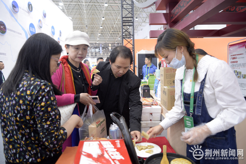 特色旅游商品展示與美食打卡體驗區(qū)也是人氣較旺的展示區(qū)之一,300多件旅游商品、非遺文創(chuàng)、荊楚美食吸引游客前來觀看、品嘗,造型各異的文創(chuàng)雪糕、精美的楚式繡品、古樸典雅的漆木器等文創(chuàng)產(chǎn)品、非遺項目受到游客追捧,江陵鐵牛餅、石首筆架魚肚、洪湖野藕汁等特產(chǎn)美食也吸引了“吃貨”們爭相品嘗。