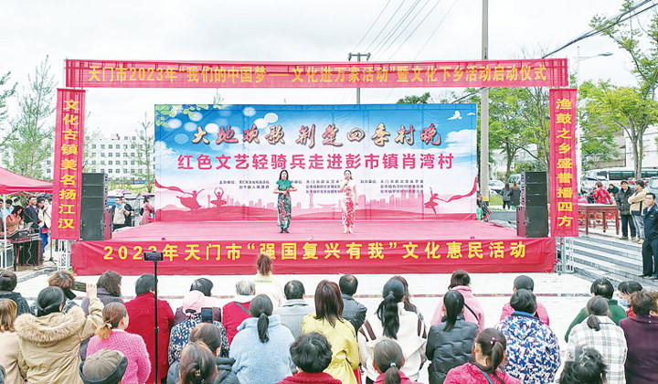 4月24日上午,天門市2023年“我們的中國夢(mèng)——文化進(jìn)萬家”暨文化下鄉(xiāng)活動(dòng)啟動(dòng)儀式在彭市鎮(zhèn)肖灣村文化廣場舉行。