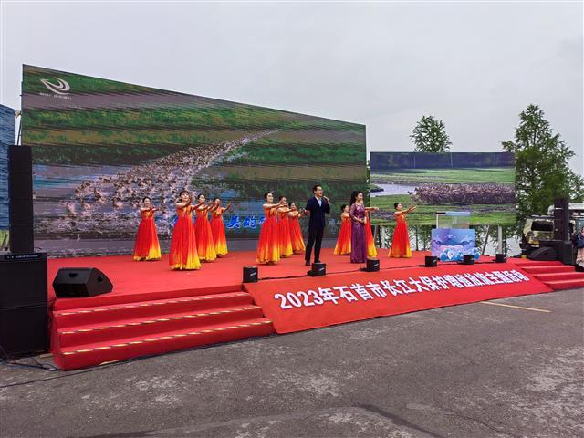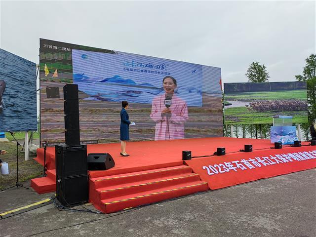 上午8點(diǎn),2023年石首市長(zhǎng)江大保護(hù)增殖放流主題活動(dòng)正式啟動(dòng),三位長(zhǎng)江大保護(hù)工作的實(shí)踐者代表來到現(xiàn)場(chǎng),和大家分享日常的工作狀態(tài),并倡議大家為守護(hù)美好家園共同努力。他們中有石首野生動(dòng)植物保護(hù)工作的生態(tài)修復(fù)見證者,有堅(jiān)守在長(zhǎng)江岸線8年的長(zhǎng)江生態(tài)守護(hù)者、還有在洲灘管護(hù)系統(tǒng)奉獻(xiàn)33年的綠色發(fā)展踐行者。