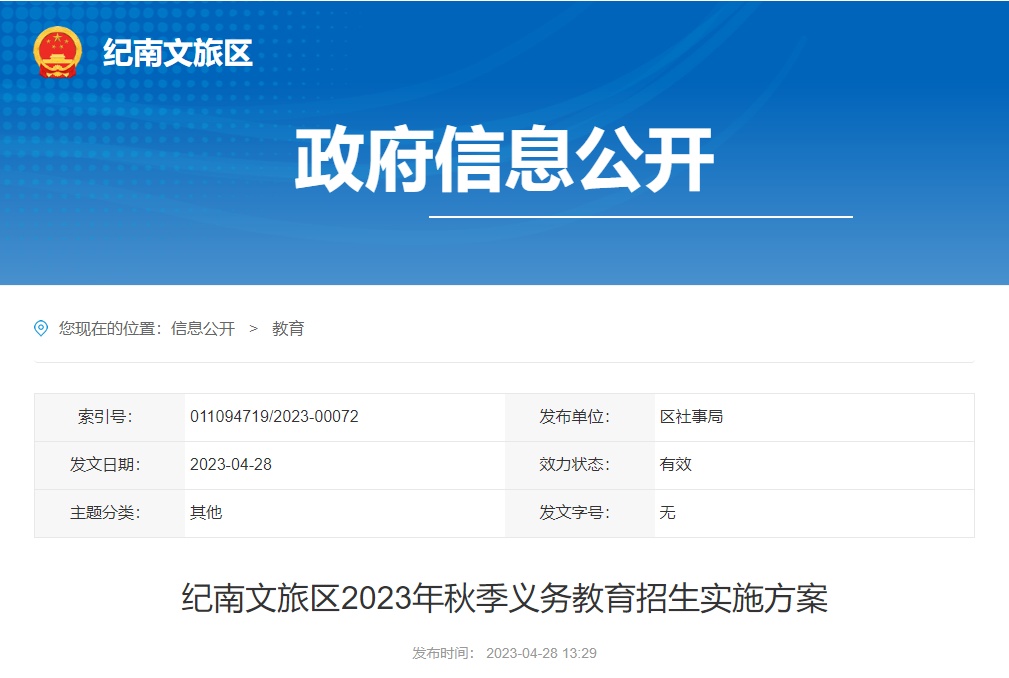 日前,荊州紀(jì)南文旅區(qū)發(fā)布2023年秋季義務(wù)教育招生實(shí)施方案。