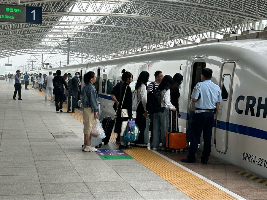 “我們還加強信息發(fā)布,并在安檢等重點崗位加派人員值守?!睗摻疖囌竟ぷ魅藛T說,該站根據(jù)客流動態(tài),科學調(diào)配運力,實行加開動車、重聯(lián)車輛的措施,提升運輸能力,保證高峰時段旅客出行安全。