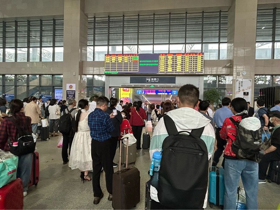 “‘五一’假期結束了,我今天返校,車站還是很多人。工作人員很熱心地引導旅客有序返程,細心的服務讓旅客感到特別溫暖,很感謝他們?!睂W生張鋒說。