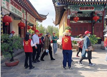 關(guān)羽祠景區(qū)的志愿者們一大早到崗,他們維持現(xiàn)場秩序、熱心為廣大游客提供咨詢、景區(qū)介紹、道路指引、文明行為引導(dǎo)等服務(wù),為廣大游客打造安全有序文明祥和的文化旅游環(huán)境,確保游客們能度過一個愉悅舒適的假期。