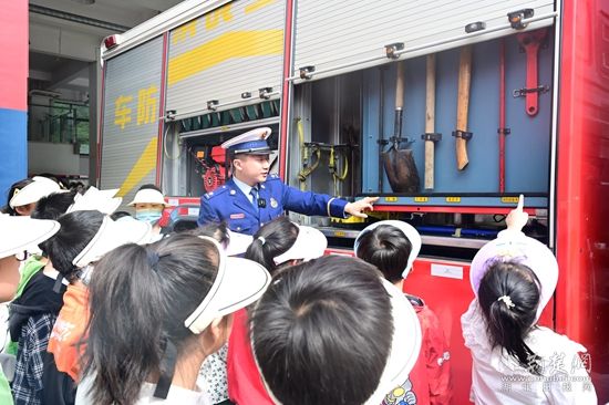 在百花路消防救援站營(yíng)區(qū),小畫(huà)家們?cè)谙绬T的帶領(lǐng)下參觀了消防車(chē)輛、器材裝備。消防員耐心地為小畫(huà)家們講解了消防安全知識(shí),詳細(xì)介紹了各個(gè)消防車(chē)輛裝備的名稱、用途以及在滅火救援戰(zhàn)斗中發(fā)揮的重要作用。