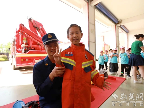 “車上都是我們常用的救援工具,別看它們體積小,作用可大著呢!”在消防員細致地講解下,孩子們認識了各類消防車輛和裝備器材,了解它們在滅火救援任務中的用途。