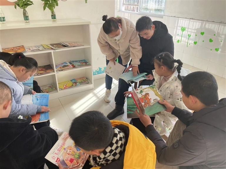 3.溫馨悅讀書吧。為貫徹落實“悅文化”在閱讀領(lǐng)域的作用,學(xué)校在教學(xué)樓的每一樓層開辟了“悅讀吧”,立足繪本探索智障學(xué)生的閱讀啟蒙,創(chuàng)建了“閱讀·悅美”主題讀書活動?!伴喿x吧”是開放式書吧,各班輪流值日,以此鍛煉學(xué)生的管理能力。各班根據(jù)學(xué)校總體安排,挑選適合各年級閱讀書目,定時定主題帶領(lǐng)學(xué)生在“閱讀吧”開展師生共讀和親子閱讀活動。班級層面的閱讀活動一周一主題,一月一展示,學(xué)校層面閱讀活動一期一評比,一年一表彰。學(xué)校以評比促進(jìn)繪本閱讀的推進(jìn),為孩子們提供敢說愿說的表現(xiàn)平臺。學(xué)校還在“悅讀吧”設(shè)置了互動文化墻,把孩子們閱讀繪本后的摘抄、繪畫、手作等元素分期在“閱讀吧”的文化墻上展覽,讓孩子們在閱讀中拓展認(rèn)知邊界。