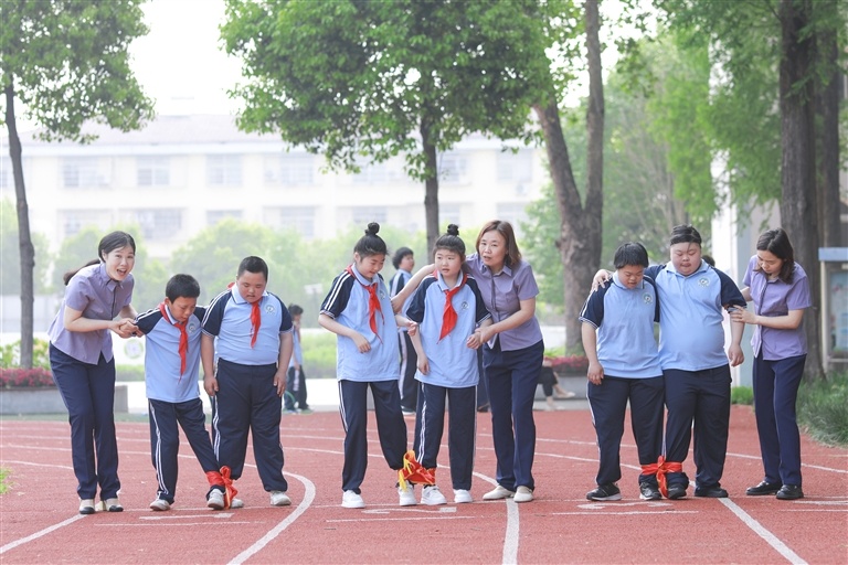 第一是建立“大手拉小手”融合教育活動制度。學(xué)校依靠江漢藝術(shù)職業(yè)學(xué)院學(xué)生會、團(tuán)委和社團(tuán)的力量,定期開展“大手拉小手”融合教育實踐活動?;顒哟_保主題明確,方案詳細(xì),形式有效。活動中,以殘障學(xué)生的興趣為出發(fā)點,讓不同班級、年齡的學(xué)生在拓展互動、體育比賽、才藝展示、參觀互訪等各類活動中積極參與、主動溝通,學(xué)會與人交往,協(xié)調(diào)解決遇到的各類問題。