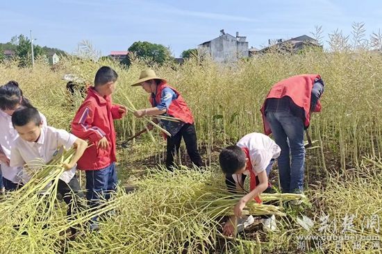 荊楚網(wǎng)(湖北日報網(wǎng))訊(通訊員劉志勇)“田間少閑月,五月人倍忙”。轉(zhuǎn)眼間,紅安縣永河小學(xué)勞動實(shí)踐基地里的油菜進(jìn)入收獲期,5月12日,永河小學(xué)各班師生趁著晴好天氣搶收油菜,現(xiàn)場一派繁忙的豐收景象。