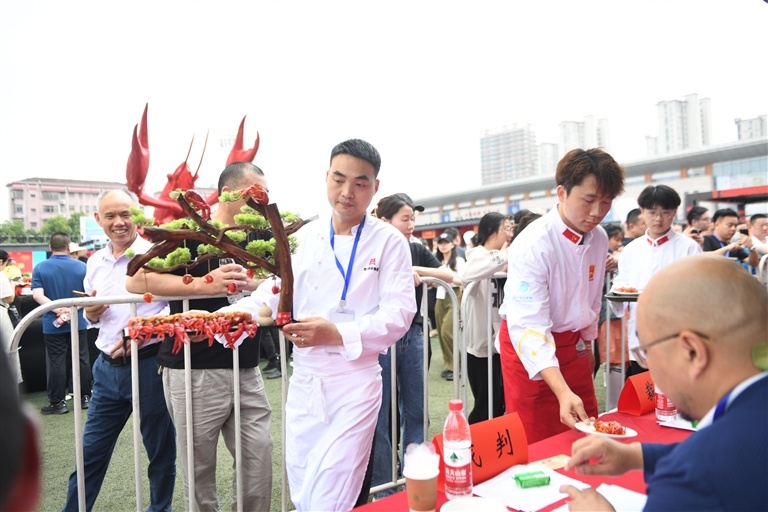 爐火爭鋒、鍋勺翻飛,廚師們使出渾身解數(shù)上演“十八般武藝”,一道道美食香氣四溢、令人垂涎……5月20日,楚大廚齊聚蝦鄉(xiāng),為全市人民獻上了一份色香味意俱全的楚菜大餐,成為本屆“一節(jié)一會”的一大亮點。
