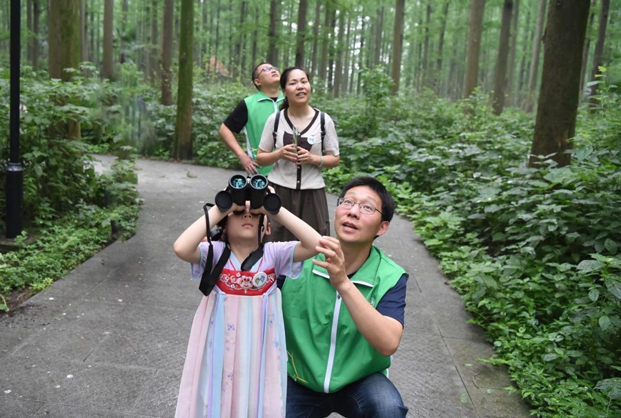 活動中,環(huán)保專家向孩子們介紹了水杉公園的生態(tài)環(huán)境和動植物資源,分享了鷺鳥救援故事。孩子們通過宣傳畫冊,清晰地了解了生活在我們周圍的珍貴鷺鳥,并和志愿者一起使用望遠鏡觀察鷺鳥的生活軌跡,深入探尋生物多樣性的奧秘,用心感受大自然的神奇。