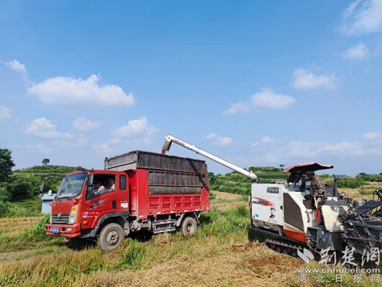 荊楚網(wǎng)(湖北日?qǐng)?bào)網(wǎng))訊(通訊員 彭鑫春)又是一年收麥忙,麥浪滾滾滿地黃。近日,在碧石渡鎮(zhèn)樟樹嶺村,四臺(tái)收割機(jī)正在田間穿梭,留下豐收的“軌跡”,麥稈化成碎茬后迅速返田,拉開了小麥開鐮收獲的序幕。