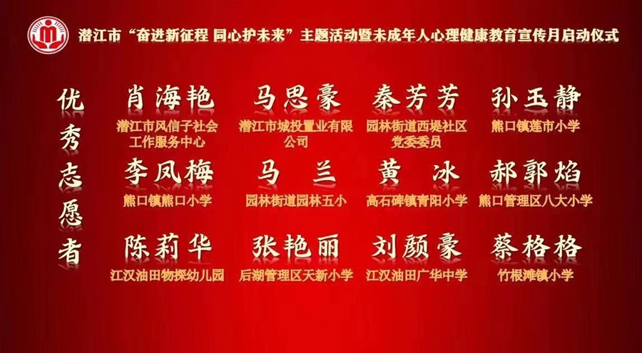 “六一”兒童節(jié)來臨之際,為有效提升我市兒童工作關(guān)愛服務(wù)水平,關(guān)愛兒童心理健康成長,推動潛江市兒童福利和兒童權(quán)益保護(hù)工作高質(zhì)量發(fā)展,5月30日晚,以“關(guān)愛心理健康、推介先進(jìn)典型、弘揚美好風(fēng)尚”為主要內(nèi)容的“奮進(jìn)新征程 同心護(hù)未來”主題活動暨未成年人心理健康教育宣傳月啟動儀式在南門河游園舉行,引導(dǎo)廣大市民共同關(guān)心關(guān)愛未成年人,為建設(shè)美好潛江和創(chuàng)建全國文明城市助力添彩。