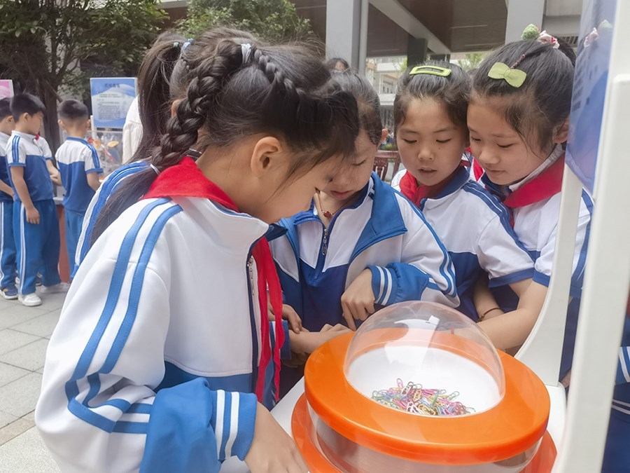 5月30日,市科技局(市科協(xié))帶著27件科普展品,來到潛江市田家炳實(shí)驗(yàn)小學(xué)(北校區(qū)),讓學(xué)生零距離體驗(yàn)科學(xué)樂趣。市新時代文明實(shí)踐科普志愿服務(wù)隊動員8名志愿者,全程為孩子們進(jìn)行指導(dǎo)講解。孩子們通過操作展品、觀察現(xiàn)象、研究原理,在“試一試”“想一想”中感受到科學(xué)魅力。